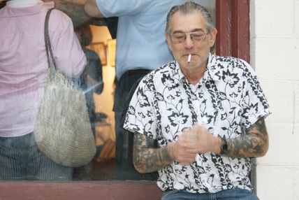 Since Machin does not tattoo people, he works on a barter system.
