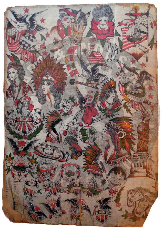 A twentieth century tattoo artist’s day consisted in taking care of customers, setting up needles and equipment, inventorying and ordering supplies and sterilizing equipment after each use. The quality of a tattoo not only depended upon the artistic talent, knowledge and expertise of the tattoo artist, but it also depended upon the quality and precision of the tools of the trade he used. A lull in customers provided an opportunity to draw and paint new flash. Then cutting a celluloid stencil for each new design had to be carefully done with a phonograph needle embedded into a wooden dip ink pen handle making sure they didn’t cut too deep so the celluloid wouldn’t crack or etched too shallow. This was so the image transferred the charcoal dust onto the skin clearly and evenly. Modern tattoo artists don’t have to be concerned with that tedious, time consuming task. They also don’t have to be careful not to rub off portions of the black powder image before the entire tattoo is completed. Now they have access to unimaginably sophisticated, life-like computerized images and renderings that were virtually unheard of in Charles Gibbons’ day. Ultraviolet ink that virtually makes a tattoo glow in the dark is also currently available but it is basically frowned upon by reputable tattoo artists, because it has caused allergic reactions. Before leaving in the evening, they sterilized the last equipment used, then cleaned and organized the shop readying it for the next day. The most important and sometimes most difficult task of the entire day was to keep the customers happy. Sometimes an impossible task. No tattoo artist is immune to having to deal with at least one trouble-making customer sometime during their long day. In the end there was nothing more fulfilling and rewarding than to have a satisfied customer and to know you accomplished a job well done.