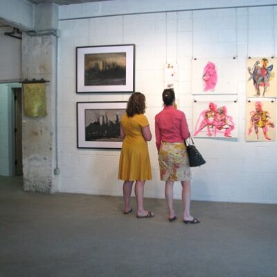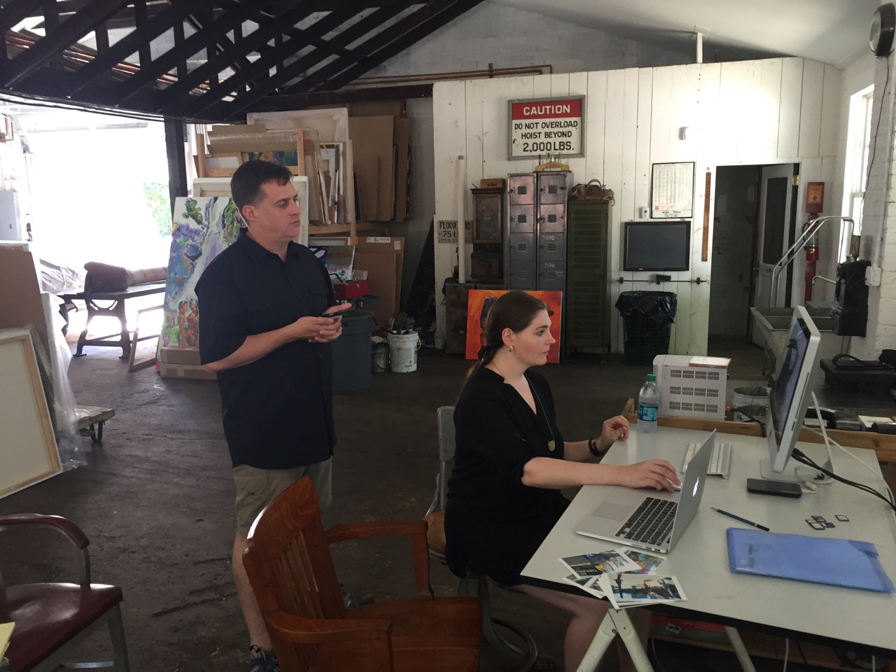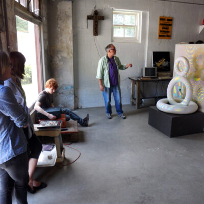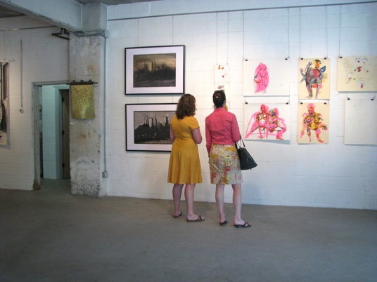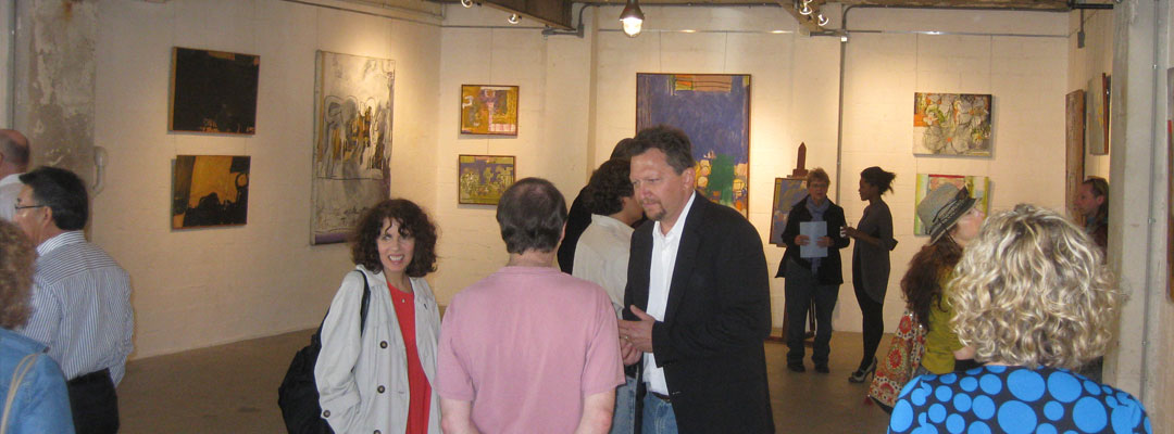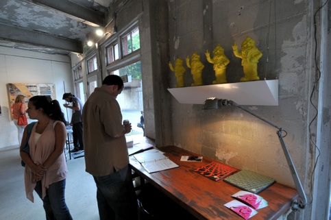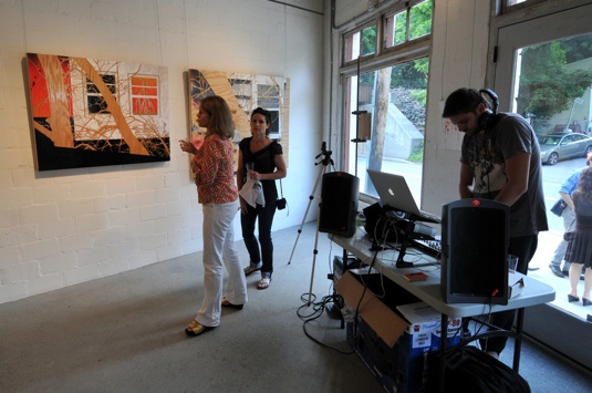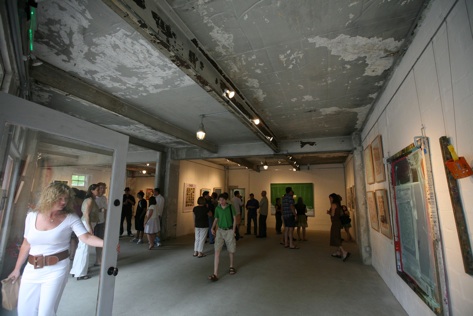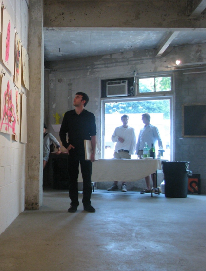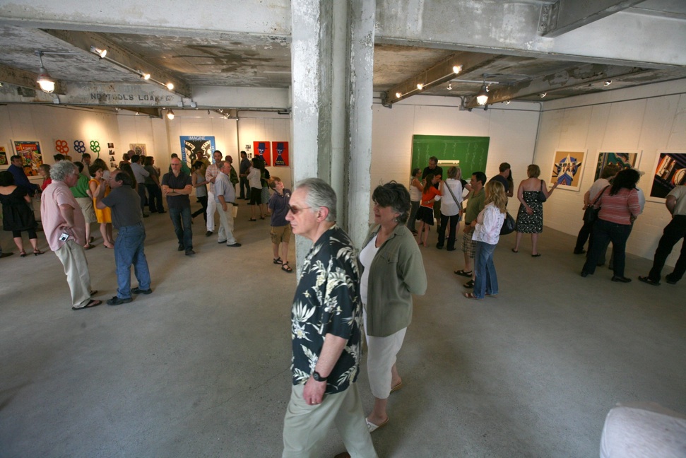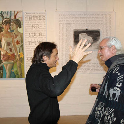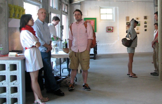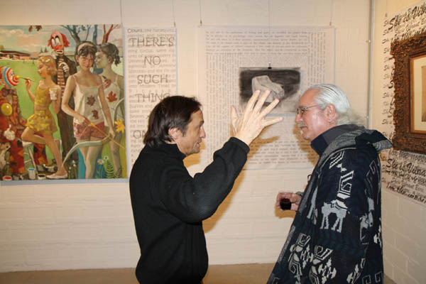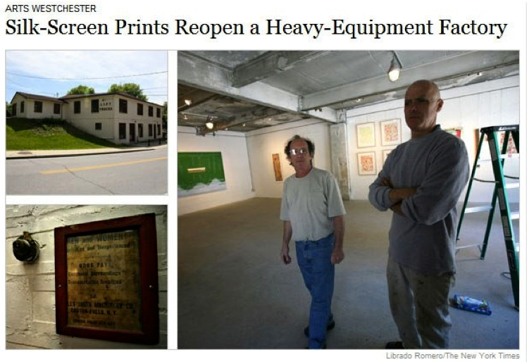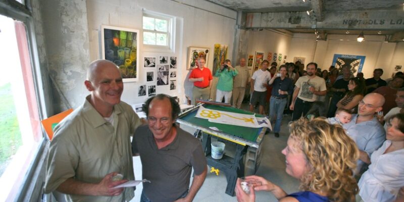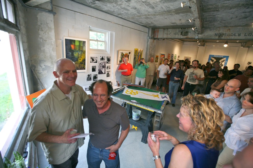 Librado Romero/The New York Times - REG - 14ARTSWE - 30080551A - 06/01/09 - Croton Falls, N.Y. - Opening day at the new gallery/studio space, LIFT TRUCKS PROJECT, on Rt. 22 in Croton Falls, N.Y. THIS PIC: left to right: Tom Christopher, artist/owner and Gary Lichtenstein and master printer and curator for this show.
