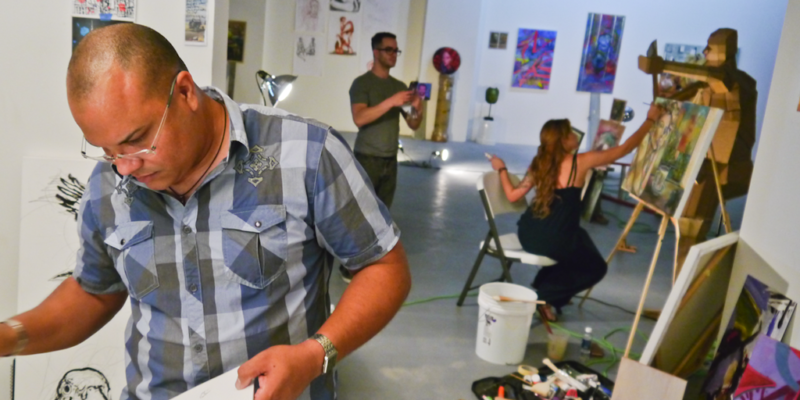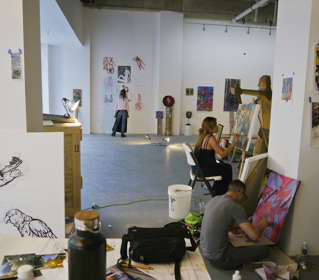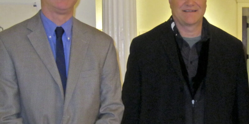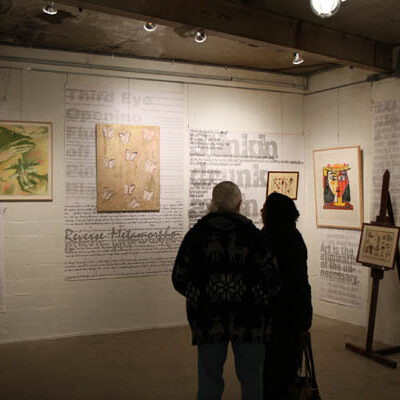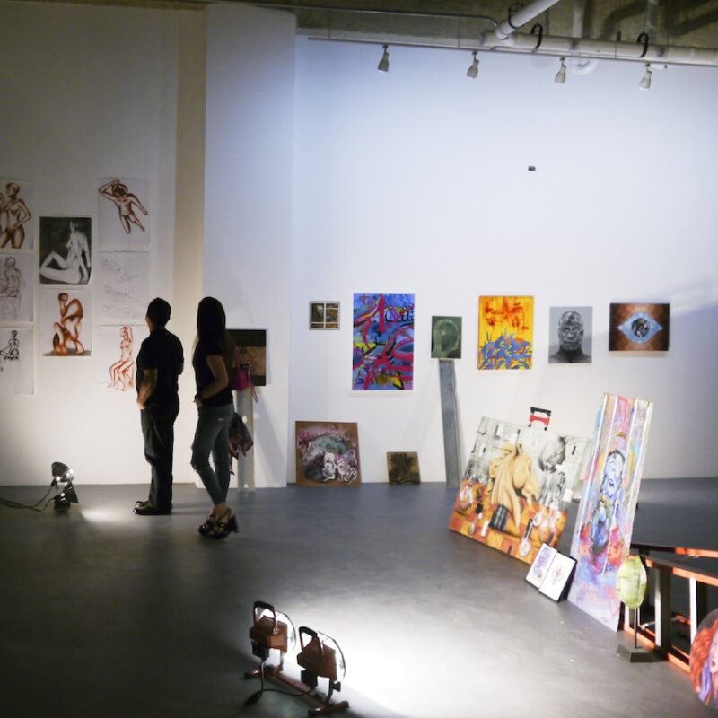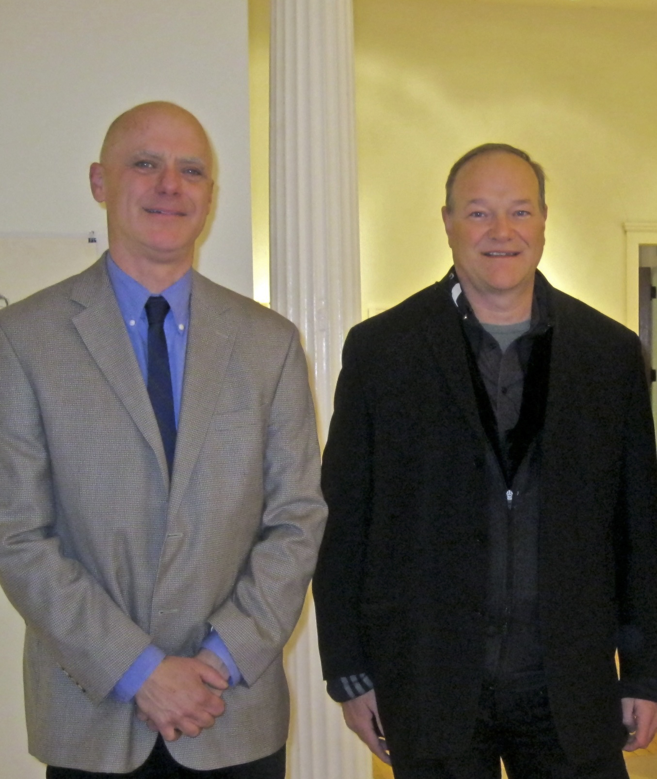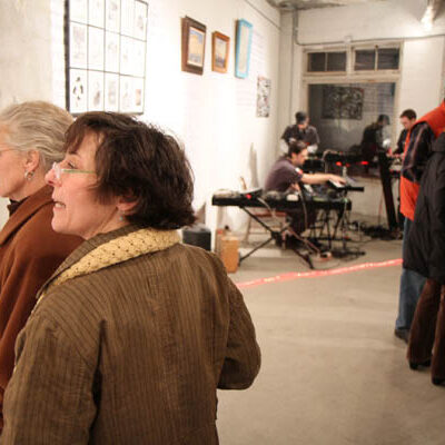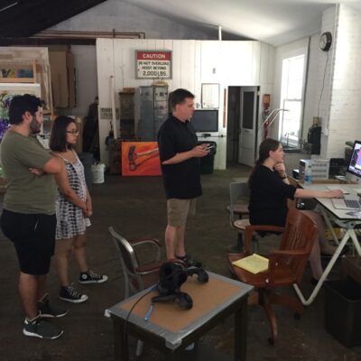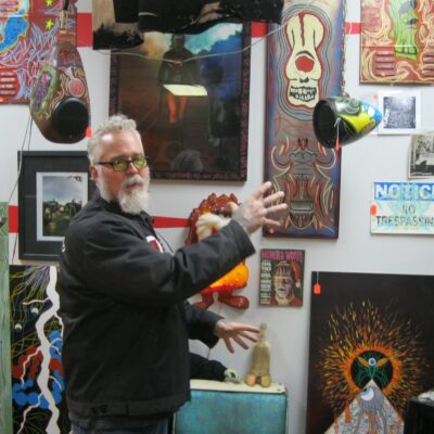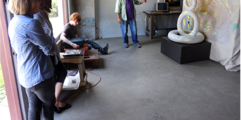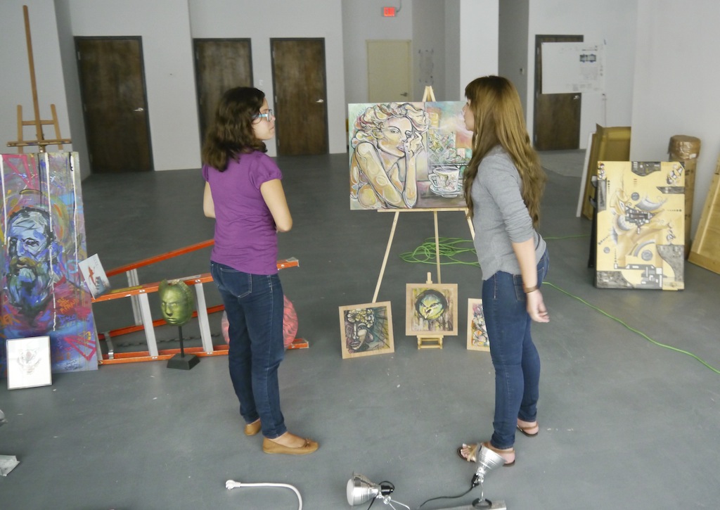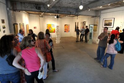 Librado Romero/The New York Times - REG - 14ARTSWE - 30080551A - 06/01/09 - Croton Falls, N.Y. - Opening day at the new gallery/studio space, LIFT TRUCKS PROJECT, on Rt. 22 in Croton Falls, N.Y. THIS PIC: left to right: Tom Christopher, artist/owner and Gary Lichtenstein and master printer and curator for this show.