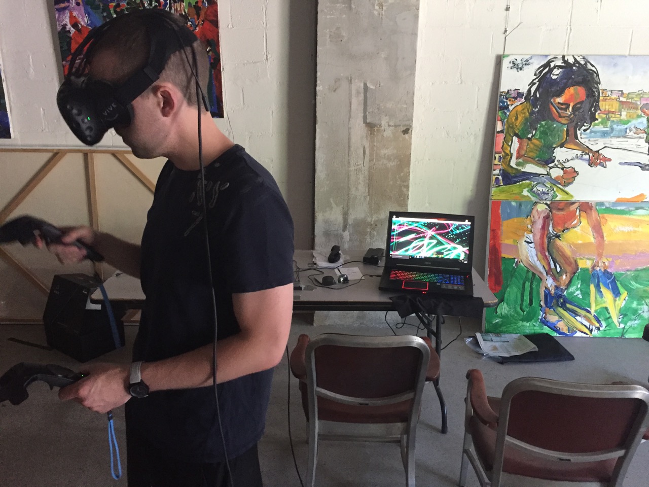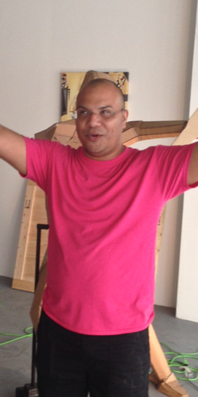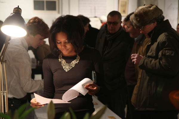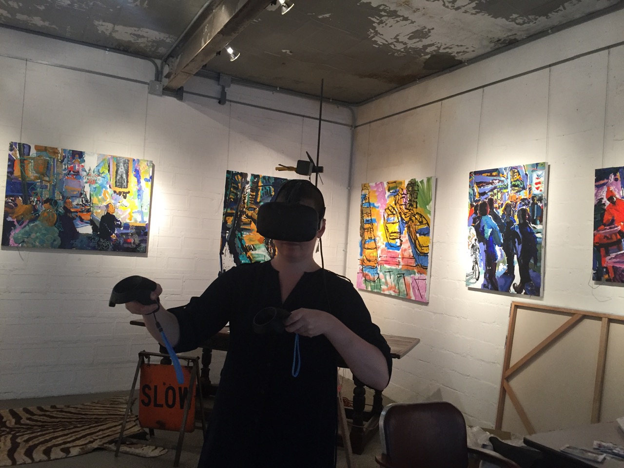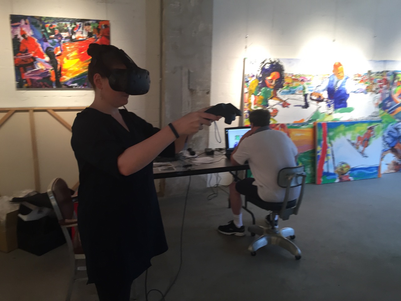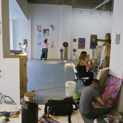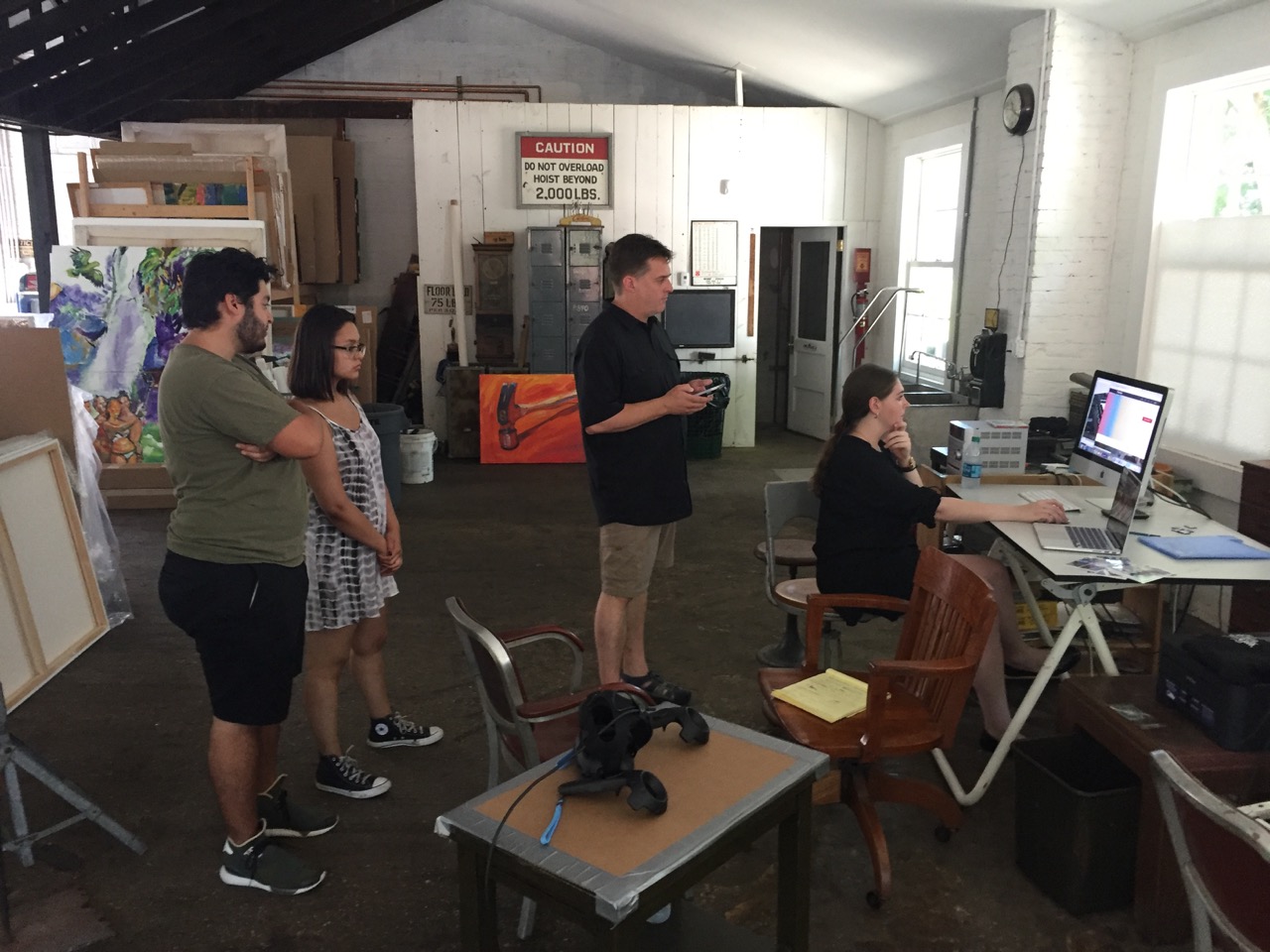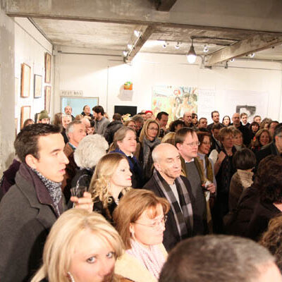 Librado Romero/The New York Times - REG - 14ARTSWE - 30080551A - 06/01/09 - Croton Falls, N.Y. - Opening day at the new gallery/studio space, LIFT TRUCKS PROJECT, on Rt. 22 in Croton Falls, N.Y. THIS PIC: left to right: Tom Christopher, artist/owner and Gary Lichtenstein and master printer and curator for this show.