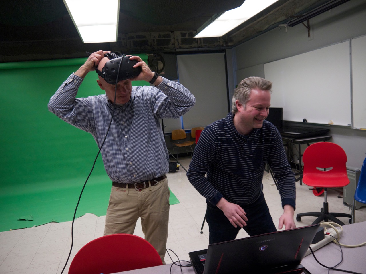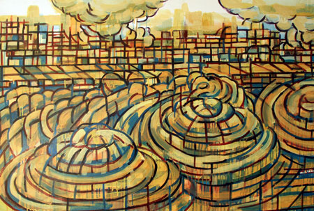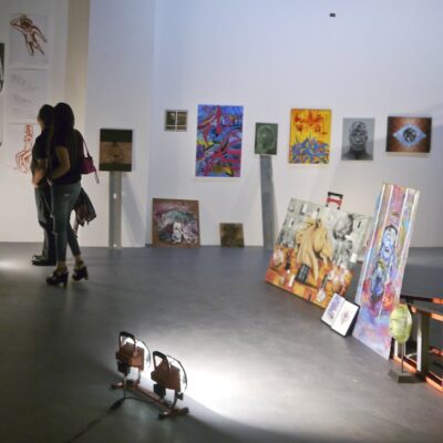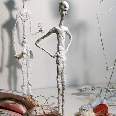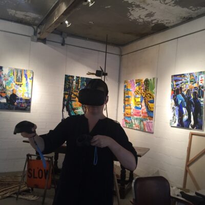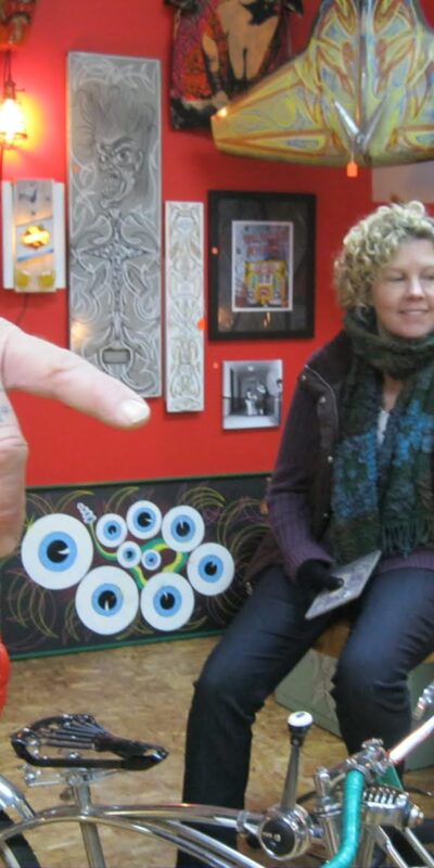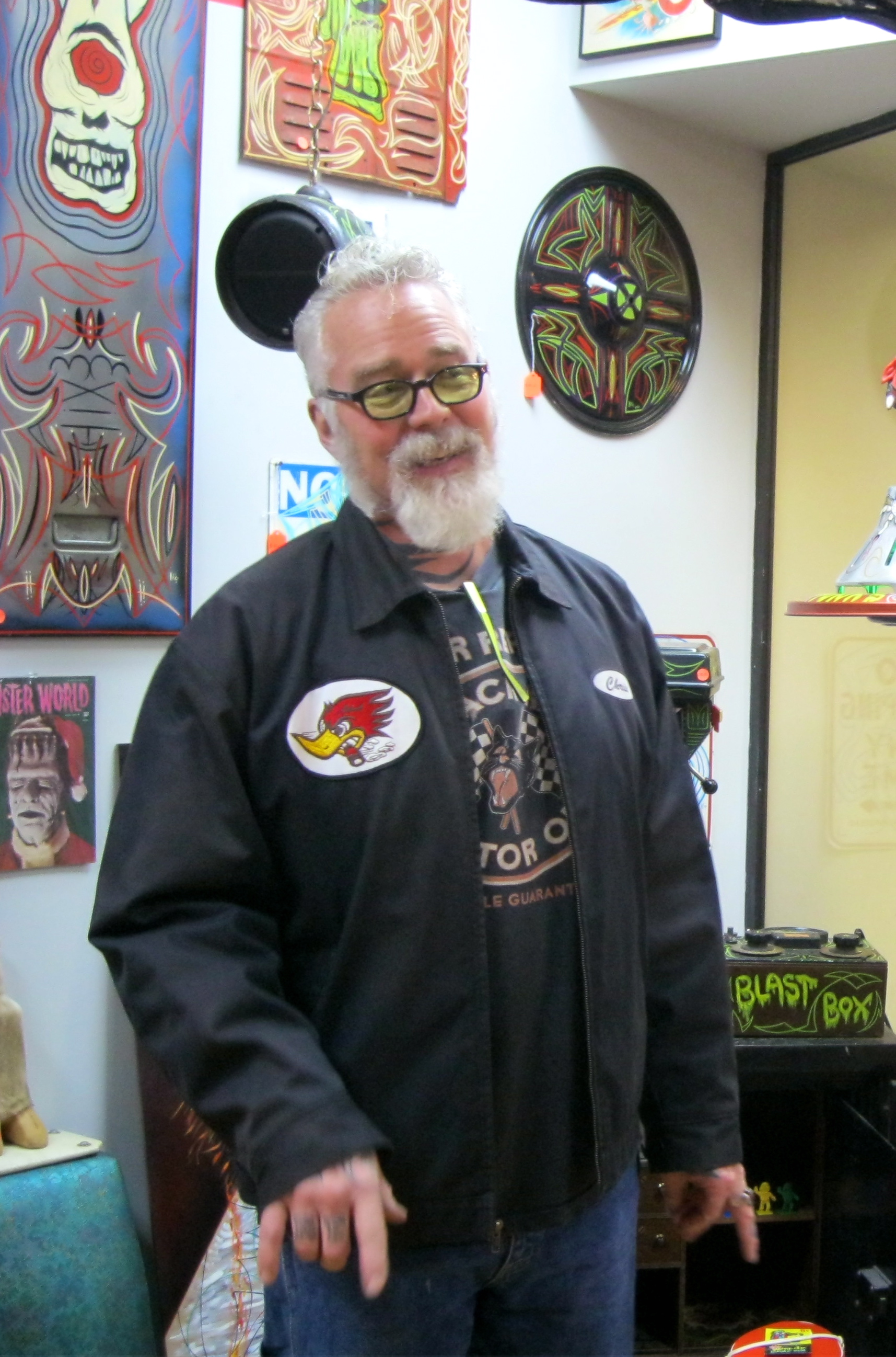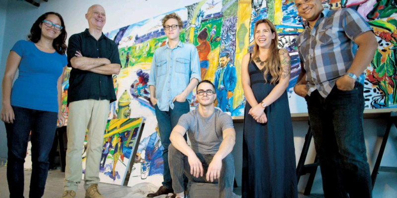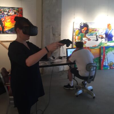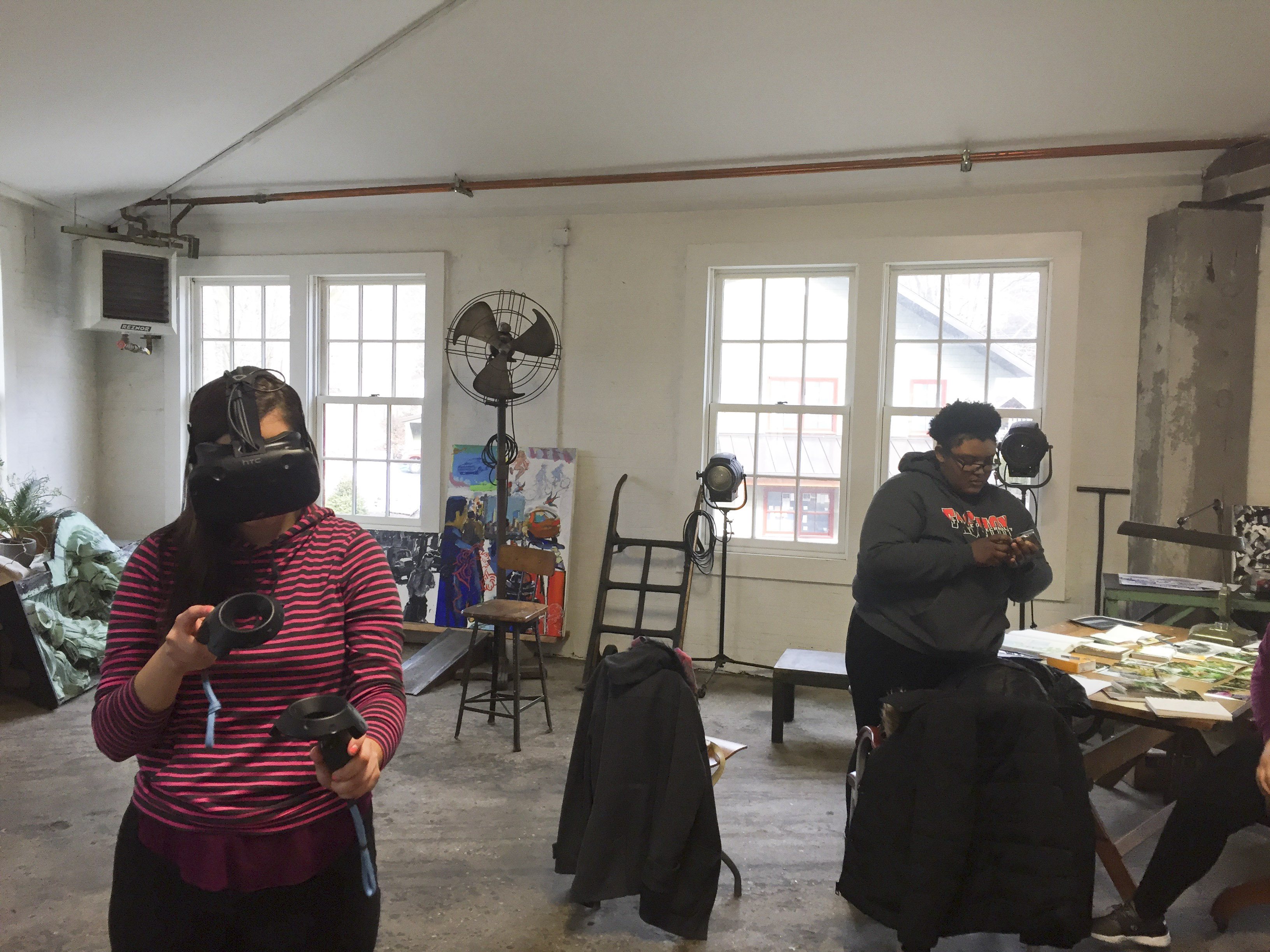 Librado Romero/The New York Times - REG - 14ARTSWE - 30080551A - 06/01/09 - Croton Falls, N.Y. - Opening day at the new gallery/studio space, LIFT TRUCKS PROJECT, on Rt. 22 in Croton Falls, N.Y. THIS PIC: left to right: Tom Christopher, artist/owner and Gary Lichtenstein and master printer and curator for this show.