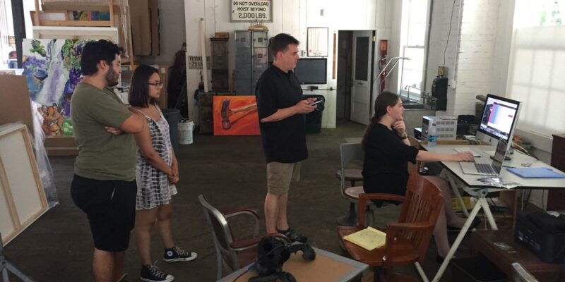 Drawing on location in the South Bronx to translate into Virtual Reality using Google Tilt Brush technology at Lift Trucks Project. Fashion Institute of Technology, NYC interns Stephanie Held and Joseph (Izzy) Irizarry