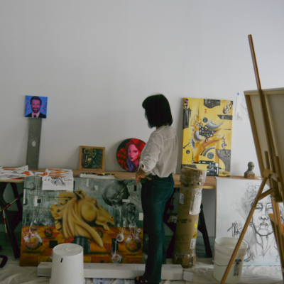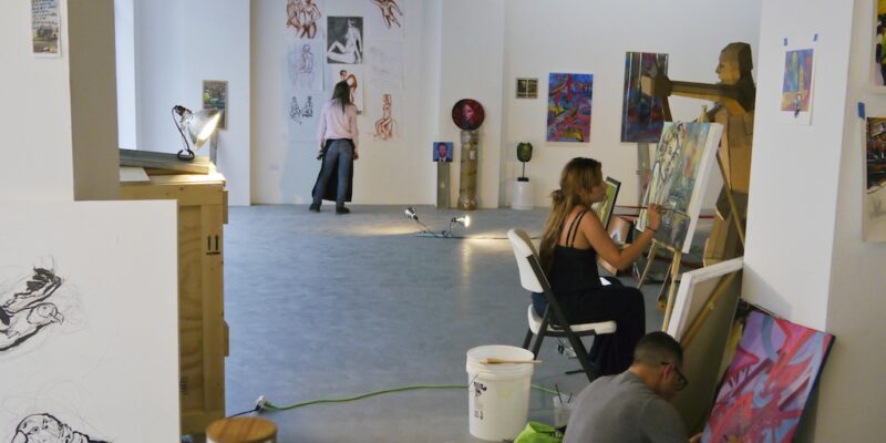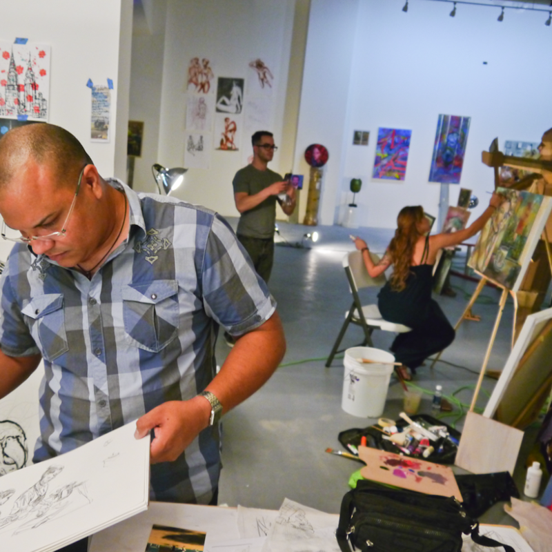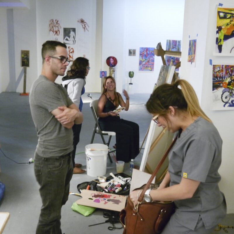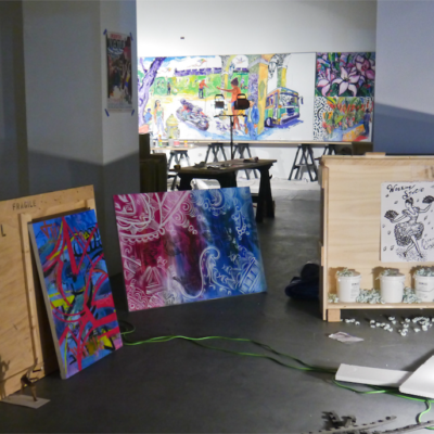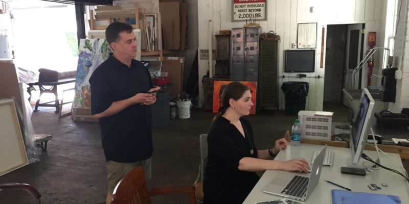 Drawing on location in the South Bronx to translate into Virtual Reality using Google Tilt Brush technology at Lift Trucks Project. Fashion Institute of Technology, NYC interns Stephanie Held and Joseph (Izzy) Irizarry