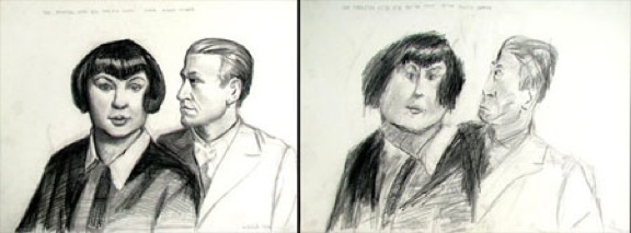 “ I would like to direct viewers to the spit and fire that Darren brings to the subjects. Why did he make an inbred count's head minuscule? Why does Churchill have this huge staring eye? A couple who might have a strained relationship, look even more ill at ease in Darren's interpretation. I think he has the natural gift of bringing out the personality of the subject he is drawing. There are too many of these examples, each one treated differently, to be accidental or a piece of luck. Once maybe, but all these works and each bringing forth a completely different and unique personality trait? From my perspective, he has the gift of perception".