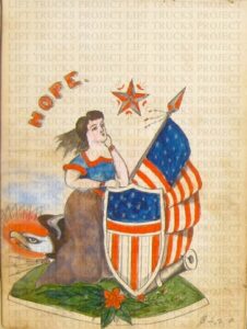 Two pages from his original sketchbook have surfaced from a folk art dealer in the South. These pieces, drawn between 1875 and 1900, are currently being displayed at Lift Trucks.